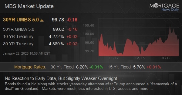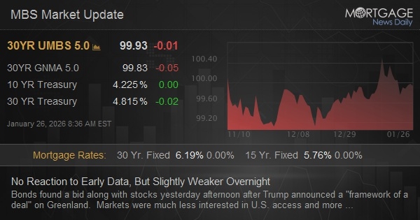 Bonds found a bid along with stocks yesterday afternoon after Trump announced a "framework of a deal" on Greenland. Markets were much less interested in U.S. access and more concerned with pausing the more immediate market-related implications (new tariffs and changes in foreign demand for Treasuries). This notion was reinforced this morning as there was no reaction at all to new comments saying the U.S. would have "total access" to Greenland with "no time limit."