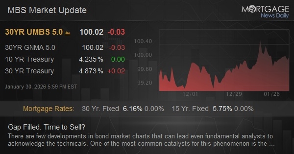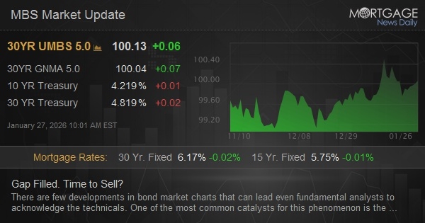 There are few developments in bond market charts that can lead even fundamental analysts to acknowledge the technicals. One of the most common catalysts for this phenomenon is the simple range breakout following by a filling of the gap created between yields on 2 consecutive days at the time of the breakout. But such gaps are less common and less easy to agree upon than simple range boundaries. So to make things simple, we'll consider the "gap" upward in 10yr yields to simply be the recent altitude achieved above the 4.20% technical ceiling. With Monday's yields making it down to 4.203, the gap is arguably filled.