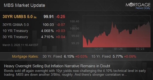 Last but not least, this chart shows today's much more noticeable uptick in the implied Fed Funds Rate for the June meeting. In other words, rate cut odds evaporated more quickly today (although they have bounced back a bit since 6:30am ET).