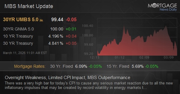 There was a very high bar for today's CPI to cause any serious market reaction due to all the new inflationary impulses that may be created by record volatility in energy markets that hasn't yet made it into the official data. In other words, CPI is a time capsule for a bygone era and the market is already trading the implications on future inflation reports to the best of its ability using oil prices as a proxy. Before the data, 10yr yields were a few bps higher overnight and haven't moved since the data. MBS are unchanged to a hair stronger after accounting for "the roll."