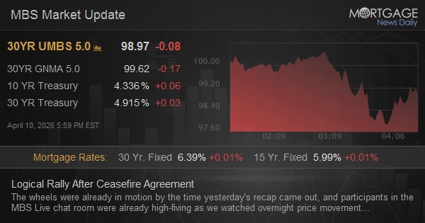 The wheels were already in motion by the time yesterday's recap came out, and participants in the MBS Live chat room were already high-fiving as we watched overnight price movement yesterday evening (and also hoping there wouldn't be some counterintuitive head fake). As the domestic session gets underway, things are proceeding very logically with bonds building just a bit on last night's rally and stocks doing the same. Oil prices were the earliest adopters and haven't improved on their initial drop, but they're close enough to the lows (down more than 20% from the highs). There's no big ticket data on the calendar today, so the gameplan is to babysit the rally and adapt accordingly.