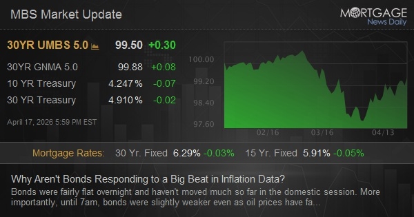 Bonds were fairly flat overnight and haven't moved much so far in the domestic session. More importantly, until 7am, bonds were slightly weaker even as oil prices have fallen and stocks have rallied. What gives?! If PPI had come in much higher than expected, it would be easier to explain. But despite the 0.1 vs 0.5 reading for core monthly numbers, the PPI components that track with the more important PCE inflation metrics were actually a bit higher. In addition, the ill effects of fuel prices have already wreaked havoc on March inflation data. If we assume (and we should) that the full effects of higher fuel prices were not yet reflected in March prices at the time of the PPI data collection, bonds have to continue treading cautiously over the inflation outlook in coming months. Away from the data and war headlines, there are other considerations ranging from new estimates of the cost to fund the war and new warnings about forced selling of leveraged bond holdings if rates start rising again.