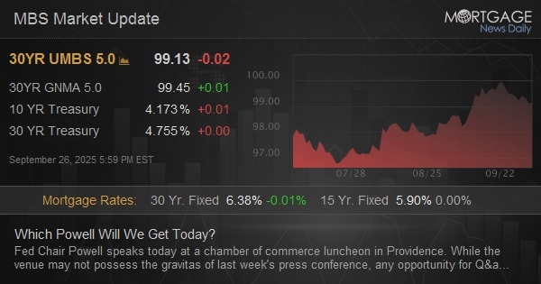 Fed Chair Powell speaks today at a chamber of commerce luncheon in Providence. While the venue may not possess the gravitas of last week's press conference, any opportunity for Q&A with the Fed Chair is an opportunity for markets to evolve their understanding of Powell's playbook. Past examples of such a Q&A sessions in the week following a Fed press conference with a clearly hawkish bias have tended to see Powell push back toward a more balanced takeaway. On rarer occasions, he's doubled down on the hawk talk. With S&P PMI data failing to inspire, Powell's Q&A (beginning at 12:35pm ET) is the day's biggest potential source of volatility.