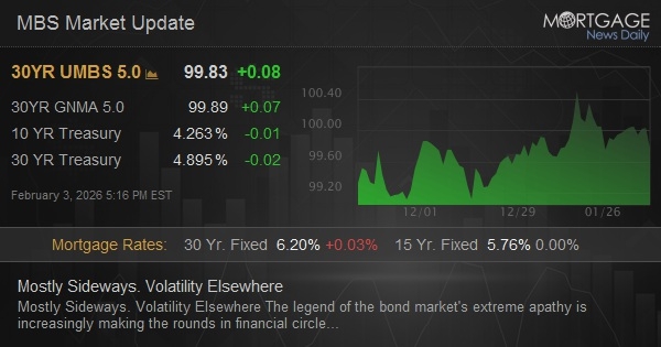 Sideways to slightly weaker overnight in Treasuries with 10yr now up 1bp at 4.285. MBS outperforming, up 1 tick (.03) on the day.