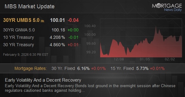 Bonds lost ground in the overnight session after Chinese regulators cautioned banks against holding US Treasuries. That move was short-lived and more than fully erased before 9am ET. Part of the bounce back can be attributed to a newswire quoting Hassett saying we should expect slightly lower jobs numbers. Some may view this as telegraphing advanced knowledge of Wednesday's numbers, but that would be highly unlikely based on the typical protocol (Council of Economic Advisors Chair typically gets advance notice the afternoon before a key economic report). It was also arguably taken out of context. The rest of the day was uneventful, sideways, and slightly stronger, with bonds ultimately ending at modestly lower yields. MBS were flat.