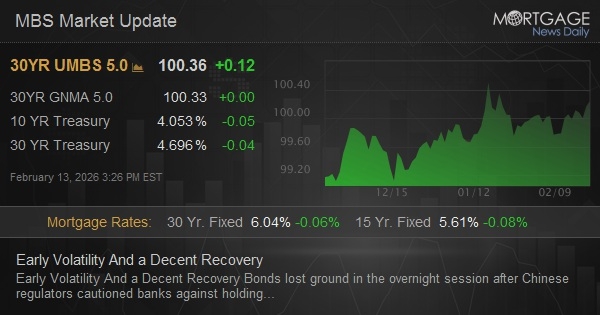 Modestly weaker overnight but mostly erased at 8:20am. 10yr up half a bp at 4.218 and MBS down 2 ticks (.06).
