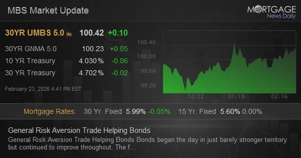 Modestly stronger overnight and holding gains. MBS up 2 ticks (.06) and 10yr down 2.6bps at 4.061