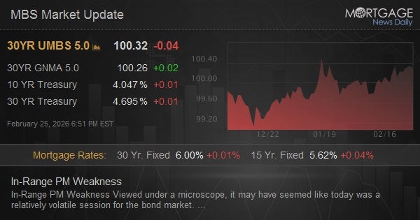 Viewed under a microscope, it may have seemed like today was a relatively volatile session for the bond market. Weaker opening levels in Treasuries gave way to a mid-day rally that nearly got rates back to unchanged levels. But the afternoon saw steady selling that took bonds to their weakest levels of the session. In the bigger picture, this was a non-event as it leaves trading levels well within the prevailing range. Additionally, there were no compelling justifications for the move unless we want to continue to force the narrative of higher stocks prices leading to higher bond yields (where the correlation has been anything but reliable).