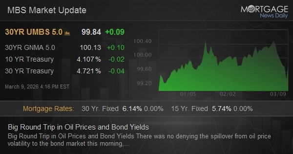 There was no denying the spillover from oil price volatility to the bond market this morning, even if it took quite a lot of the former to move the latter. At its apex, the oil surge was the largest daily move on record at over $26/bbl (just over a 28% jump). This translated to a 10yr yield jump of almost 8bps to start the overnight session. But things were already reversing course quickly by the time European trading began. Then, by the start of U.S. trading, 10yr yields were already back below 4.18% and continued to fall back to unchanged levels at 4.13% by 2pm ET. The reversal almost perfectly traced the reversal in oil prices.