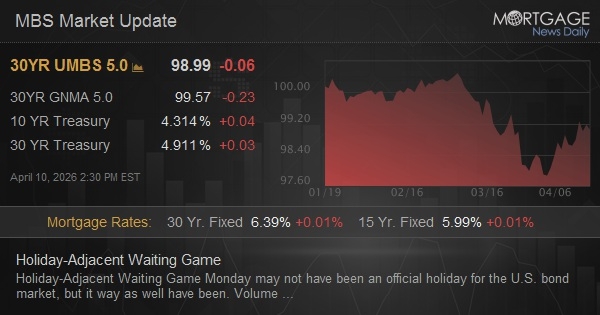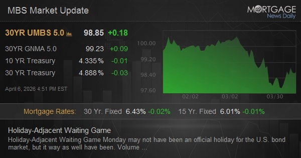 MBS up 6 ticks (.19) and 10yr down 0.7bps at 4.334