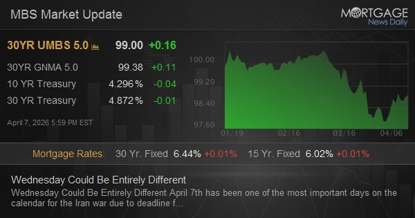 April 7th has been one of the most important days on the calendar for the Iran war due to deadline for Iran to accept Trump's terms or face major escalation. If the escalation was even remotely similar to Trump's threats, it would all but preclude a quick end to the war and especially the market-related fallout. heading into the close, Pakistan floated an option for a 2-week ceasefire in exchange for reopening the Strait of Hormuz. Markets responded favorably to notion with stocks and bond both rallying and oil prices falling to session lows. Given the absolute and severe nature of the alternative, it would be a surprise if tomorrow didn't involve a larger than normal move in one direction or the other.