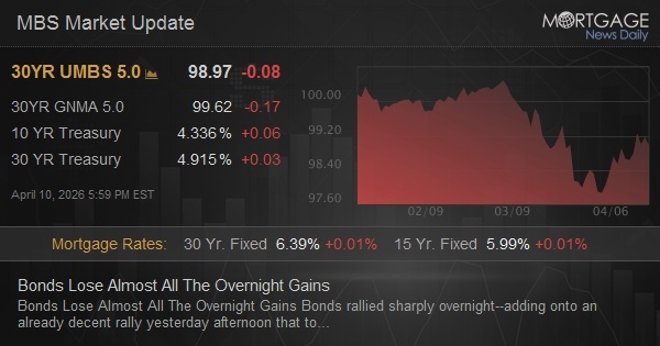 MBS up 5 ticks (.16) but down a quarter point from highs. 10yr down 2.8bps at 4.268, but up more than 3bps from lows.