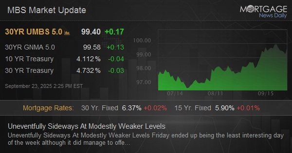 Modestly weaker overnight but erasing some losses since 9am. MBS down 2 ticks (.06) and 10yr up 1.5bps at 4.119.