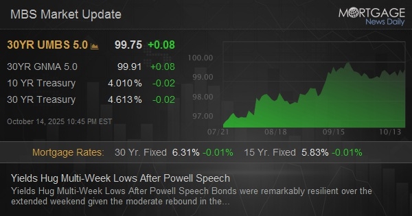 Slightly stronger after Powell speech. MBS up 3 ticks (.09) and 10yr down 0.2bps at 4.031