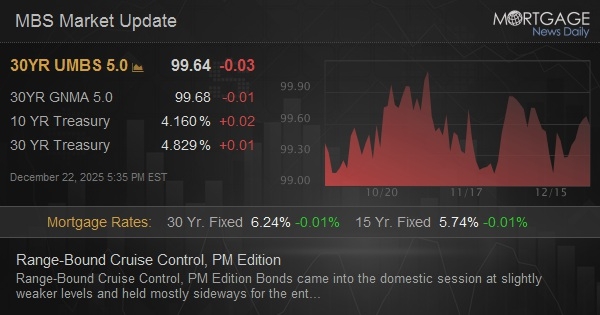 modestly weaker overnight and holding sideways so far. MBS down 2 ticks (.06) and 10yr up 2bps at 4.16