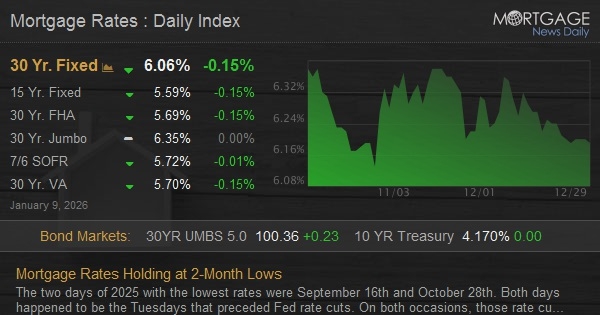 Bottom line: at current levels, any day that rates spend holding steady or moving microscopically lower will technically result in the lowest rates since October 28th. It would take a more noticeable improvement to break below that floor. When and if that happens, rates will be the lowest since early 2023.