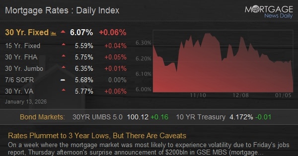 The caveat is that MBS experienced significant volatility throughout the day and that volatility is likely to continue. As of this afternoon, at least one lender has already bumped rates back up a bit. If more lenders follow suit, the end of day average rate could move up, but it would still likely be the lowest in at least a year.