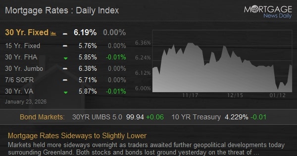 Up until that point, mortgage rates were holding right in line with yesterday's latest levels, but some lenders are offering mid-day improvements this afternoon.