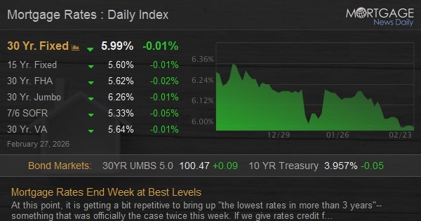 At this point, it is getting a bit repetitive to bring up "the lowest rates in more than 3 years"--something that was officially the case twice this week. If we give rates credit for stably holding these long-term lows (and we should!), then every day this week has been the best in more than 3 years.