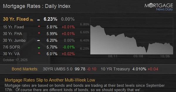 With this in mind, it's no surprise to see mortgage rates also at the lowest levels since September 17th. The same was true yesterday, but today marked another incremental improvement.