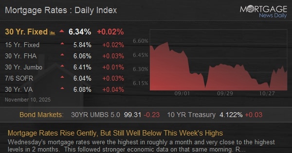 Wednesday's mortgage rates were the highest in roughly a month and very close to the highest levels in 2 months. This followed stronger economic data on that same morning.