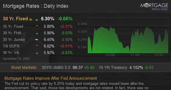 The Fed cut its policy rate by 0.25% today and mortgage rates moved lower after the announcement. That said, those two developments are not related.