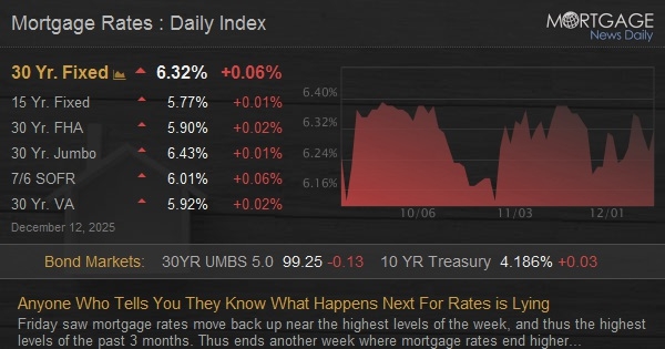 Friday saw mortgage rates move back up near the highest levels of the week, and thus the highest levels of the past 3 months. Thus ends another week where mortgage rates end higher despite a Fed rate cut.