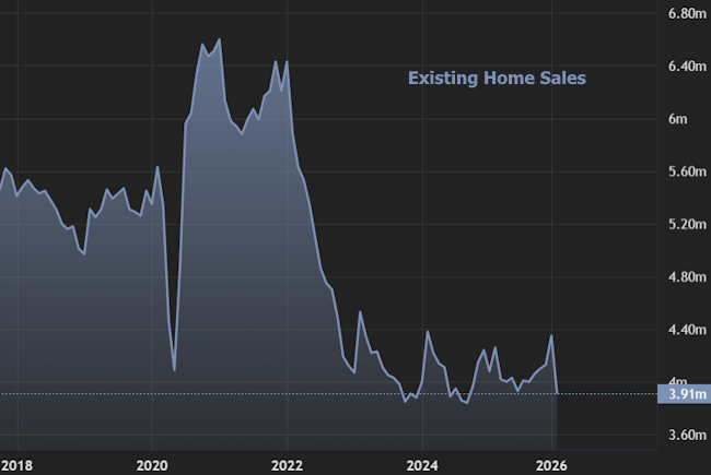 Sales fell 8.4% to a seasonally adjusted annual rate of 3.91 million, the lowest levels since November 2024. According to the National Association of Realtors (NAR), transactions were also 4.4% lower than the same time last year, with every region posting both month-over-month and year-over-year declines.