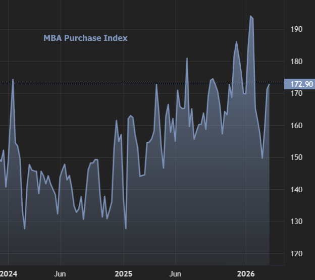 Purchase demand proved more resilient. The seasonally adjusted Purchase Index increased 1% from one week earlier and was 12% higher than the same week one year ago. Gains in FHA and VA purchase activity helped offset flat conventional demand, with improving inventory and slower home price growth continuing to support year-over-year strength.
