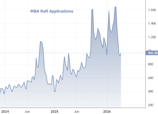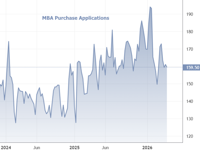 Purchase activity remained soft, with the seasonally adjusted Purchase Index slipping 1% week over week. On an annual basis, purchase applications are down 3%, marking a second consecutive week of year-over-year declines as buyer hesitation persists.