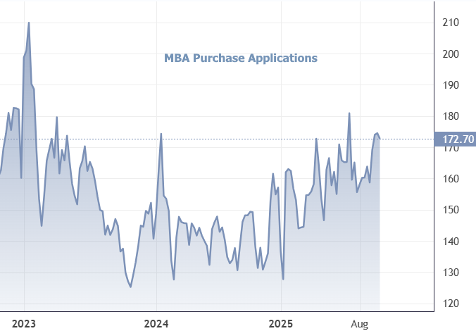 Purchase applications edged lower, with the seasonally adjusted index down 1% and the unadjusted index down 2%, though both measures remain 16% stronger than a year ago.