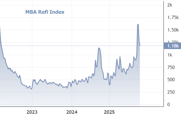 Mortgage application activity declined again last week as refi demand continues pulling back after the surge in mid September. According to MBA’s Weekly Applications Survey for the week ending October 3, total volume fell 4.7% on a seasonally adjusted basis and 5% unadjusted.