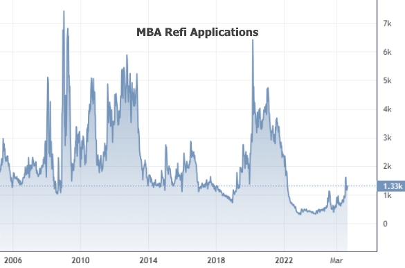 It bears repeating that things look different in context. Specifically, while refi demand looks great compared to the past 2 years, we're just now getting up to levels that were considered "very slow" historically.