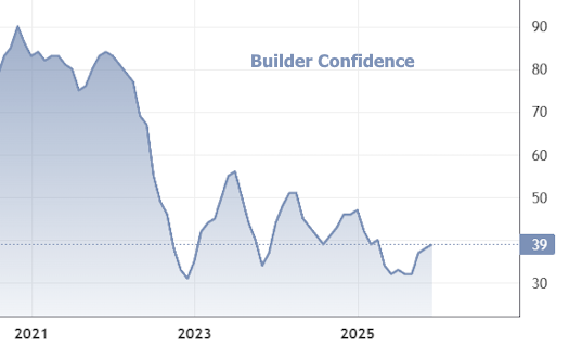 The December National Association of Home Builders (NAHB)/Wells Fargo Housing Market Index (HMI) edged up one point to 39. This is the 3rd straight month of improvement in the index--a development that could be confused for something encouraging. But the reality is that builder confidence is merely drifting along just barely above the lowest levels in more than a decade. This has been the case for more than 3 years now.