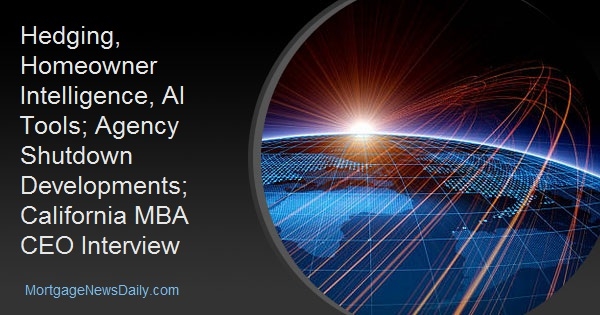 Here in Telluride, CO, after learning of my capital markets background, yesterday someone bluntly asked me, “Can one person slow or stop the United States economy, or the world economy?” I was taken aback by the question, but it isn’t totally off-base: no one is saying a shutdown helps GDP. In eight months, we’ve learned not to underestimate the changes that can be made by the current administration. We had been talking about the government’s shutdown, impacting several areas of residential lending (see below). As previous “on the record” statements made by President Trump circulate and are being used against him about the role of the president in situations like this, there is plenty of blame to go around. But the U.S. government shutdown is strengthening expectations for additional Federal Reserve rate cuts, which is exactly what Trump wanted, with markets fully pricing in an October move and giving an 88 percent chance of another in December. Delays and risks to the labor market from 750,000 furloughs make it more likely Chair Jerome Powell will push for further easing, even as inflation pressures from tariffs remain a concern. Remember when all we fretted about were tariffs? (Today’s podcast can be found here and this week’s are sponsored by Spring EQ, one of the nation’s leading non-bank home equity lenders, giving partners more ways to serve customers. Known for speed, service, and innovation, Spring EQ makes tapping into home equity easier. Hear an interview with new California MBA CEO Paul Gigliotti on his goals while in the role and how state and national organizations can work together for the greater good of the mortgage industry.)